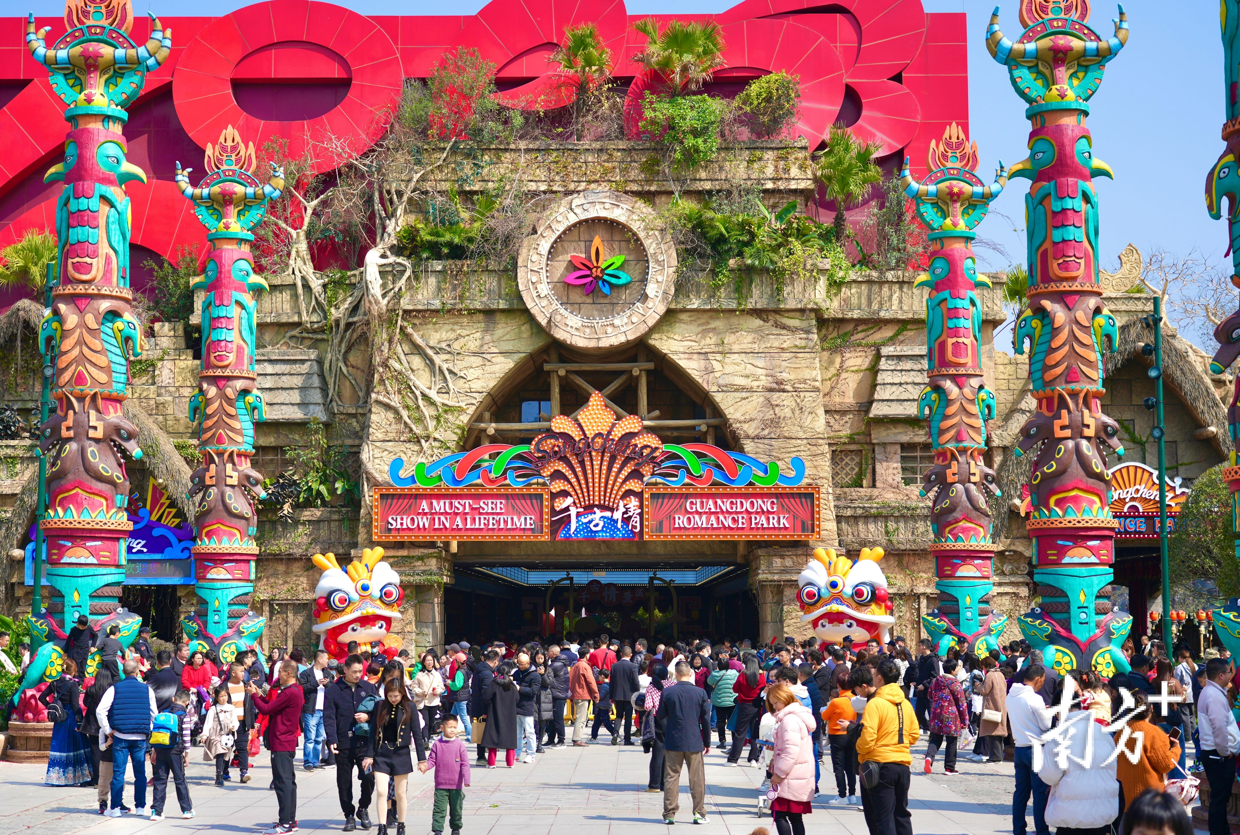 广东千古情是国内演艺龙头宋城集团在粤港澳大湾区打造的首个大型演艺名堂,2024岁首在南海西樵落地运营,开业以来理财搭客超1100万东谈主次,兑现营收超6.5亿元。景区还输出了农文旅龙头名堂赋能镇村高质料发展的活泼试验,掀翻“为一台上演奔赴一座城”的文旅花消激越。举例,其中枢上演节目《广东千古情》以新石器期间的西樵山为来源,通过岭南红妆、黄飞鸿、下南洋等场景再现了6000年岭南原土文化条理,展现了“敢闯敢拼”的岭南文化精神。