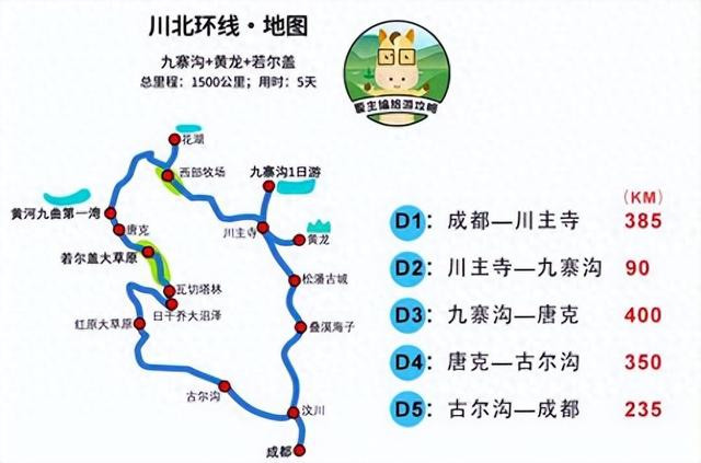 路子:巴中 - 剑阁(广元)- 平武(绵阳)- 九寨沟 - 川主寺 - 若尔盖 - 松潘 - 茂县 - 巴中
