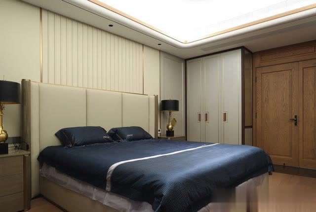 卧室选拔当代从简作念硬装,借助淡色调,交融从简登科线条和图案,营造出高雅又不失丽都的氛围。新登科格调把妥当然元素,故而卧室常选木质产品,这次区别于传统深色,选拔象牙色原木色等仁和色调,打造得志睡觉空间。随地用金色线条点缀,突显全体讲究感。皮革寝具搭配宝蓝色床品,让卧室更显高等。床头两侧台灯,兼具袒护与照明功能。总共这个词房间揣摸打算从简大方又温馨得志。