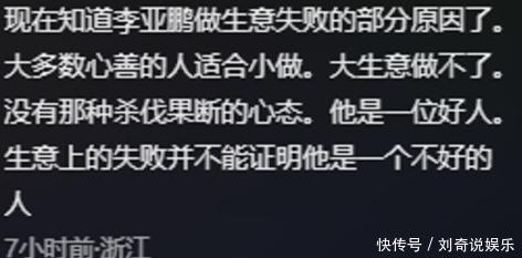 以前东说念主们老是见笑他作念生意总失败,目下才发现,他失败也许并不是因为智力不够,而是因为他太仁和了。一位网友示意,目下终于分解李亚鹏作念生意失败的部分原因了,有东说念主评讲述“大部分神性仁和的东说念主合乎小限制经营,作念不了大生意”。