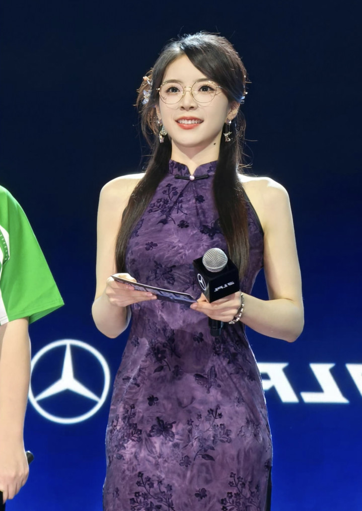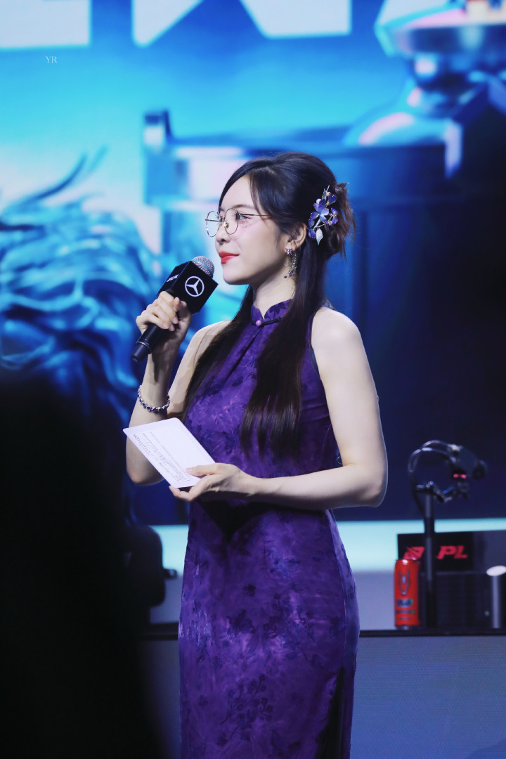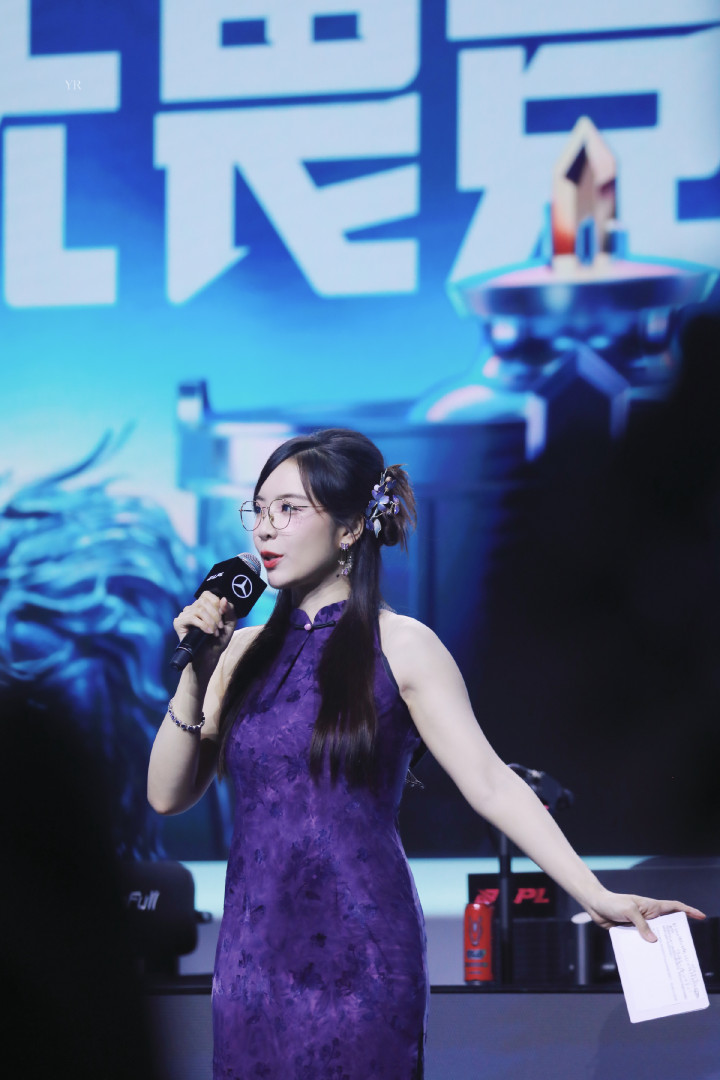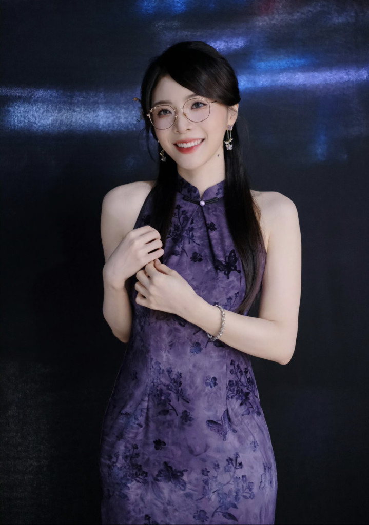 电竞主执东说念主余霜一袭紫色旗袍,旗袍上雅致无比的暗纹似夜色里悄然盛放的花簇,贴合体态的剪裁将她的好肉体尽数勾画:腰肢纤细,身姿唯妙,开叉缠绵又为举座增添了几分灵动气味。