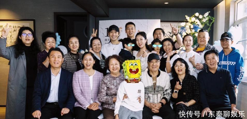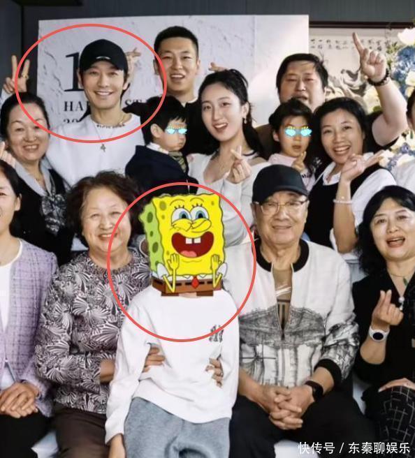 相片里,小海绵被爷爷奶奶一左一右护在合影C位,而黄晓明却寡言站在后排边缘。