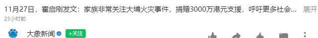 1、大象新闻2025年11月28日《11月27日,霍启刚发文:家眷特别关怀大埔失火事件,捐赠3000万港元辅助》 但为栽植著述可读性,细节可能存在润色,请千里着安逸阅读,仅供参考!