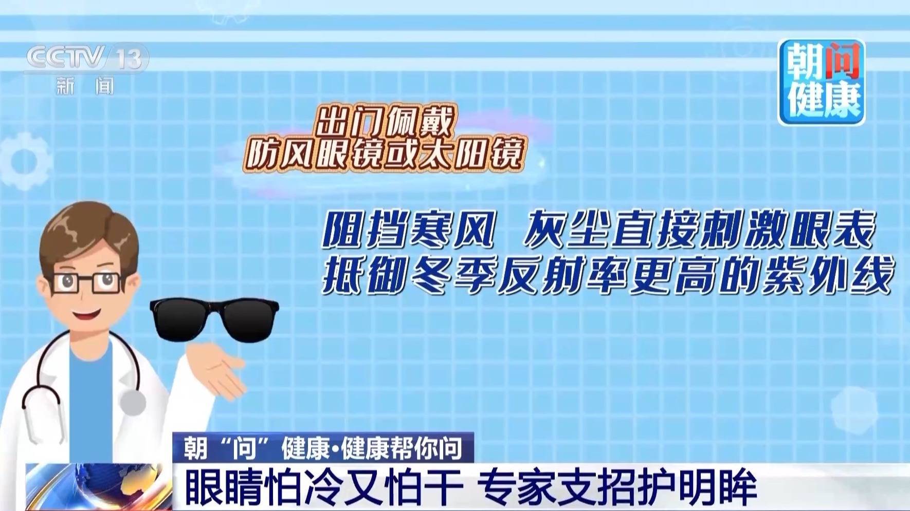 冬季护眼该何如作念?外出率领防风眼镜或太阳镜,既能各别寒风、灰尘平直刺激眼表,还能抗拒冬季反射率更高的紫外线;此外,提倡隐没低温大风时段外出。
