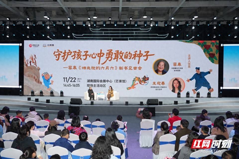 11月22日,着名绘本画家蔡皋携新版《晒龙袍的六月六》在2025中国文体盛典·湖南文体周暨第四届岳麓书会与渊博读者碰头。